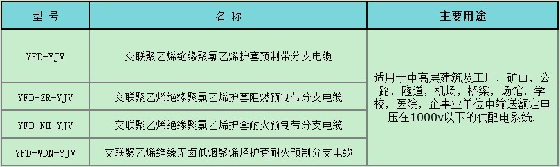 五、預(yù)制分支電纜的型號、名稱及主要用途